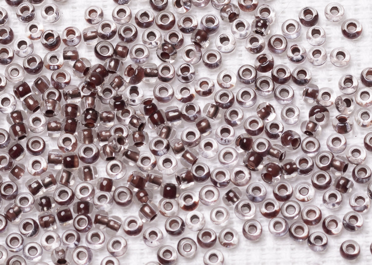 Бисер Чехия круглый 10/0 50г 38019 прозрачный, темно-коричневая линия внутри