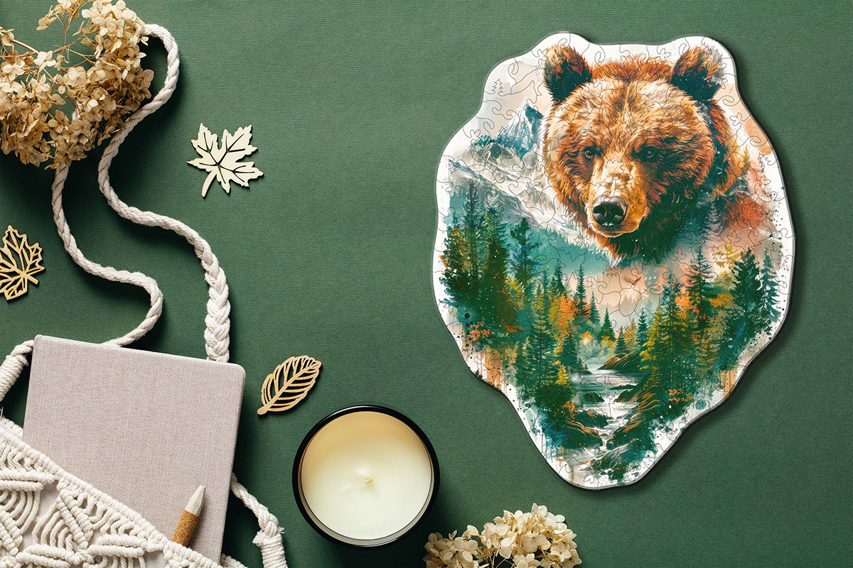" ФРЕЯ" PZLF- 007 Пазл фигурный деревянный " Медведь в тайге" 156 элемент.