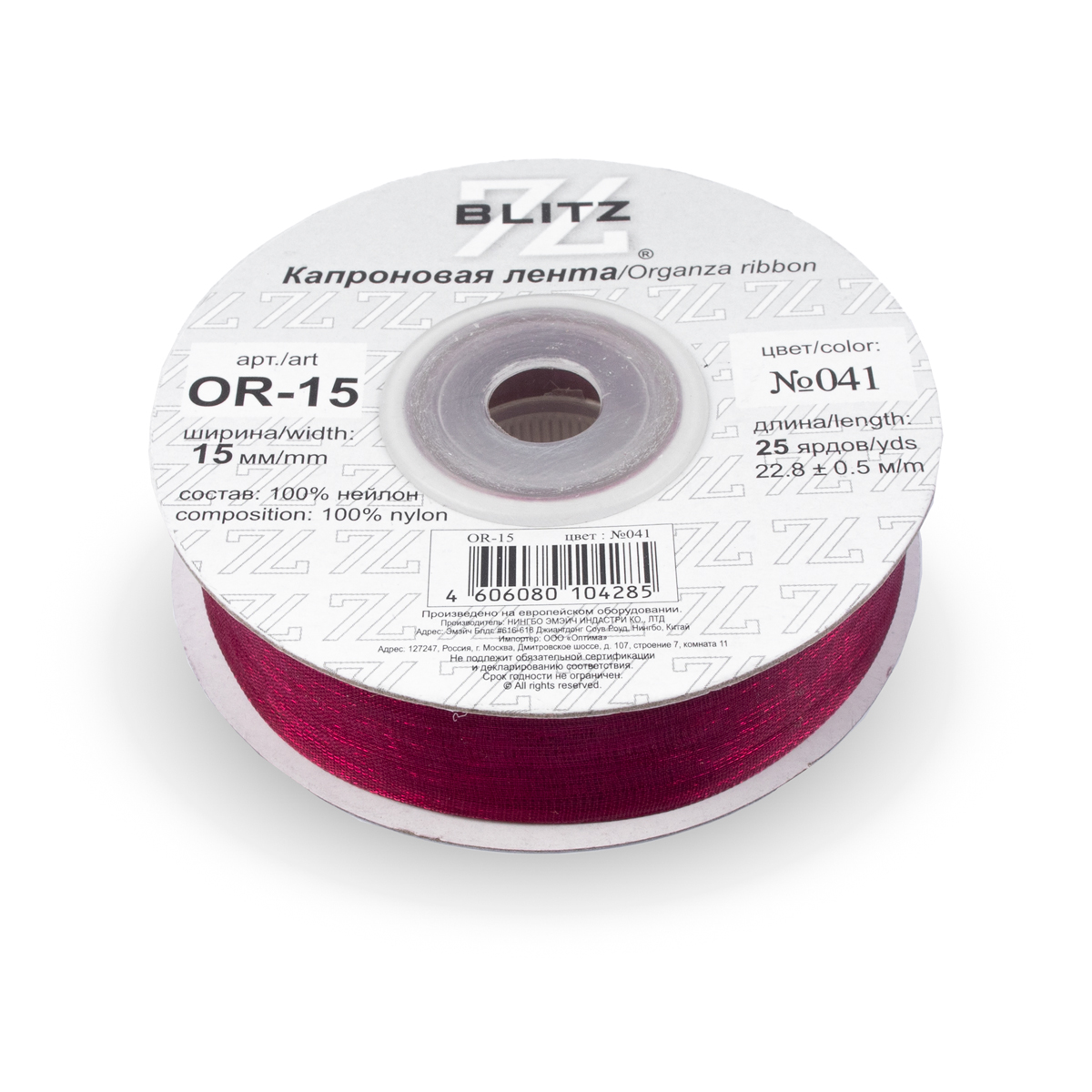 лента 15 мм OR-15 BLITZ 22.8 м ±0.5 м №041 т.бордовый