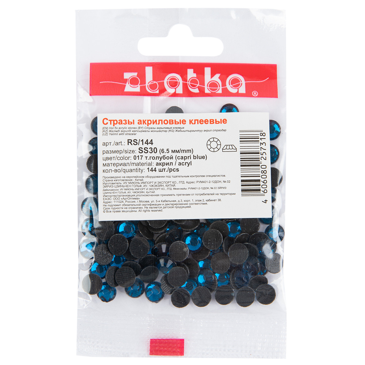 Страз клеевой " Zlatka" RS/ 144 SS30 6 - 6. 5 мм акрил 144 шт в пакете с еврослотом 033+ св. красный ( lt siam)